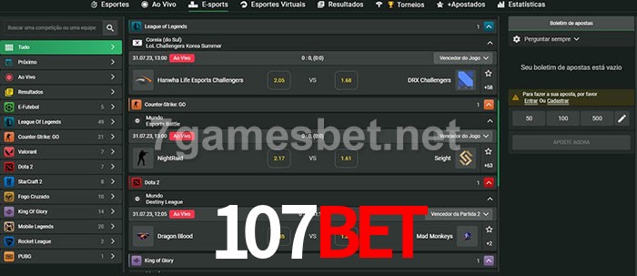 O 107bet oferece uma grande seleção de opções de apostas em e-sports com probabilidades competitivas